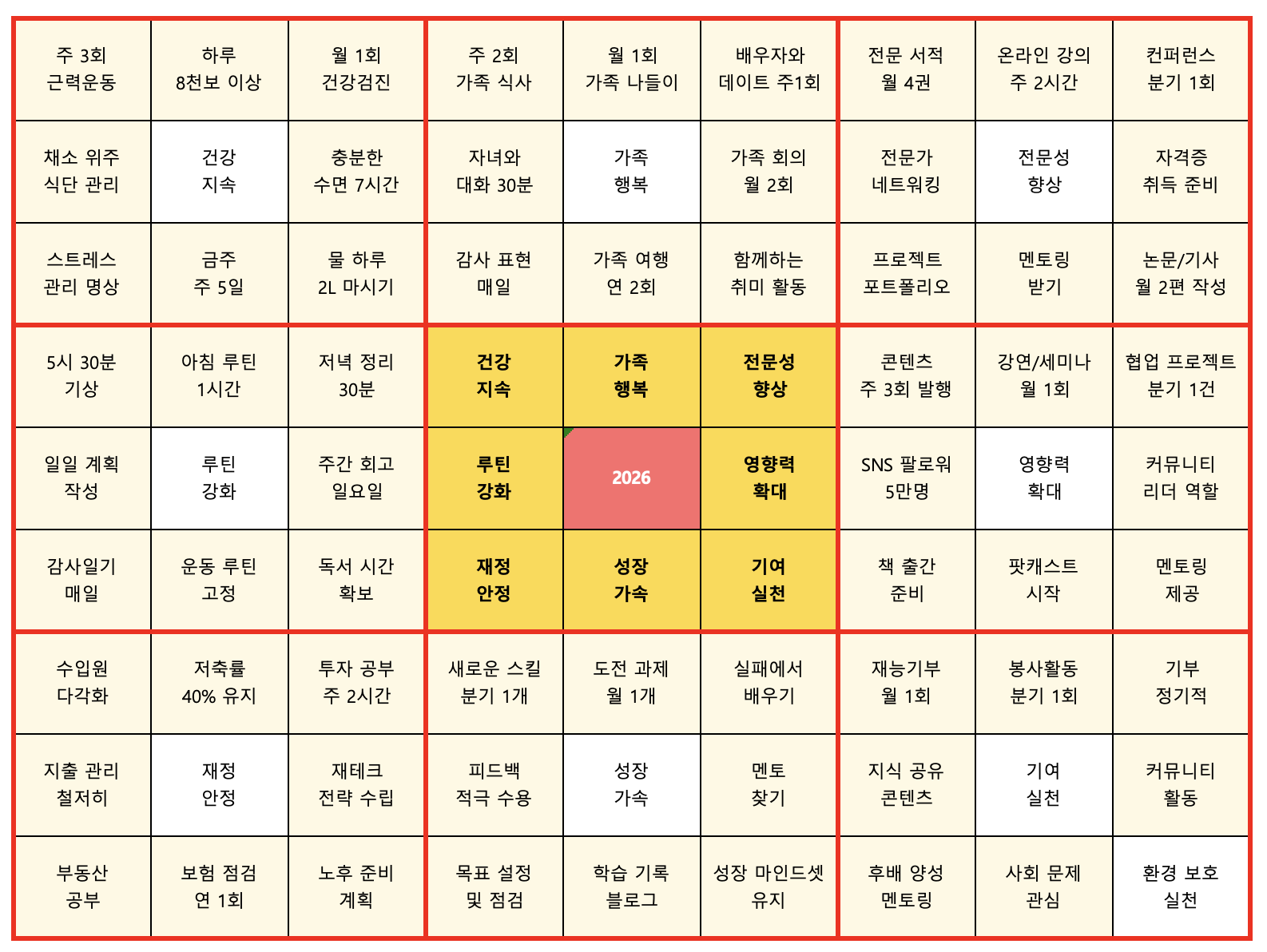 만다라트를 매년 만드는 진짜 이유는 '달성'에 있지 않다. 그것은 '기억'에 있다. 내가 누구인지, 무엇을 소중히 여기는지를 잊지 않기 위함이다.