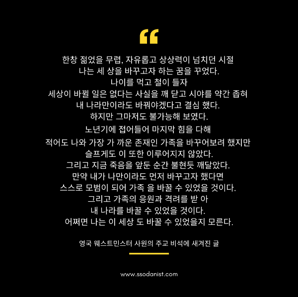 결국, 세상을 바꾸는 첫걸음은 나 자신을 바꾸는 것이다.